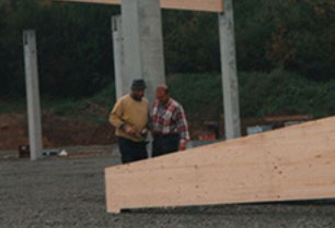 1992 erweiterten wir unsere Kapazitäten mit dem Bau der Zimmereihalle – der Abbundhalle – zwischen Werkstatt und Scheune. Die Firma wuchs weiter: Acht Mitarbeiter, drei Busse, zwei Anhänger, ein LKW und unser bewährter Autokran gehörten mittlerweile zu unserem Bestand.
