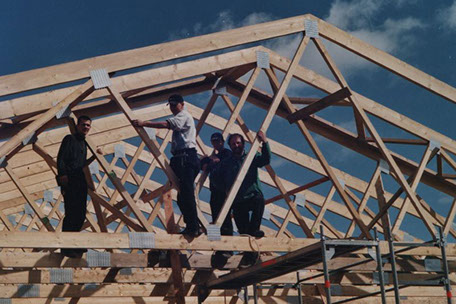 In den Anfangsjahren konzentrierten wir uns auf Dachreparaturen, den Bau von Carports und Dachstühlen. Bereits zwei Jahre später ermöglichte die Anschaffung eines Autokrans eine erhebliche Erleichterung und Effizienzsteigerung beim Aufrichten von Bauwerken. Zu dieser Zeit fokussierten wir uns ausschließlich auf reine Holzbauarbeiten.